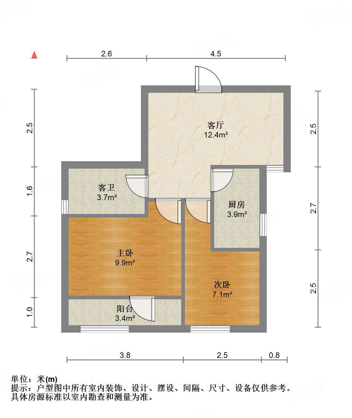 朝向南 建筑面积65㎡
