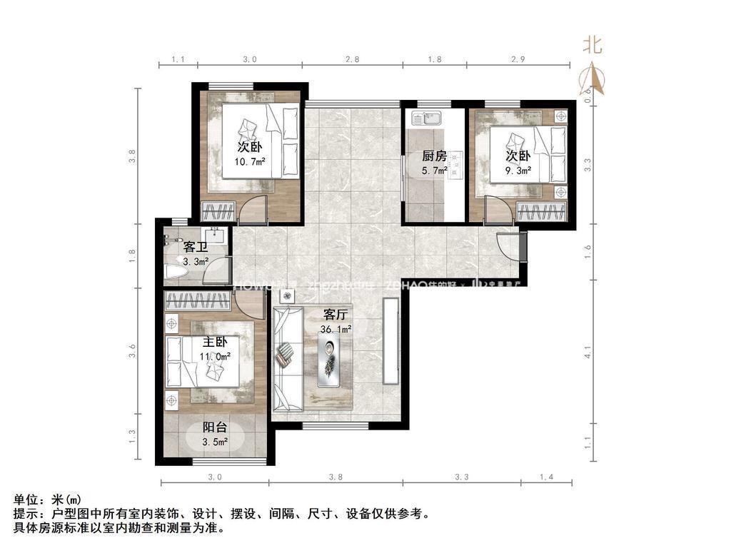 厅室3室2厅2卫1阳台