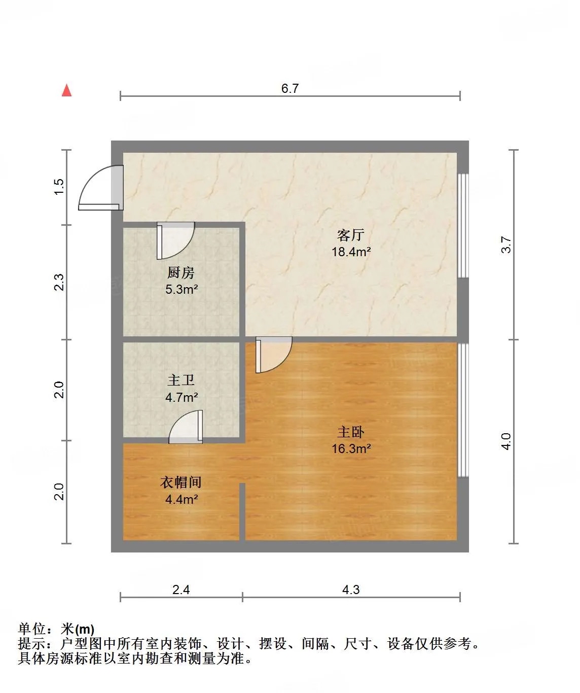 厅室1室1厅1卫1阳台