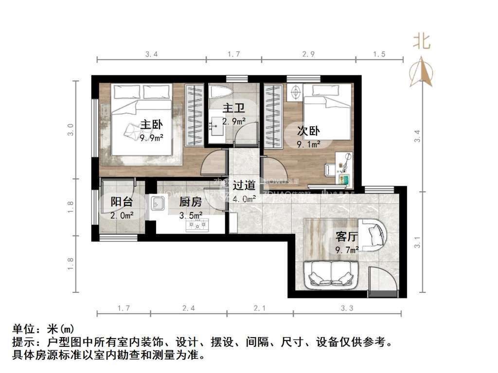厅室2室1厅1卫1阳台