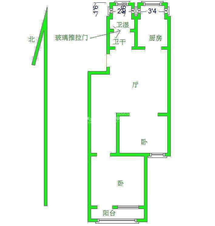 厅室2室1厅1卫1阳台