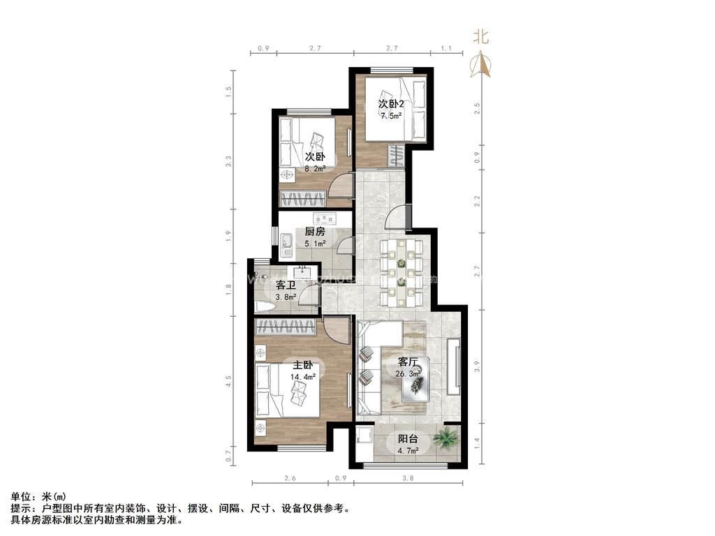 厅室3室2厅1卫1阳台