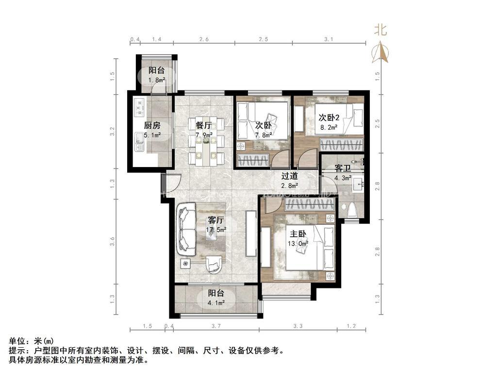 朝向南北 建筑面积111.17㎡