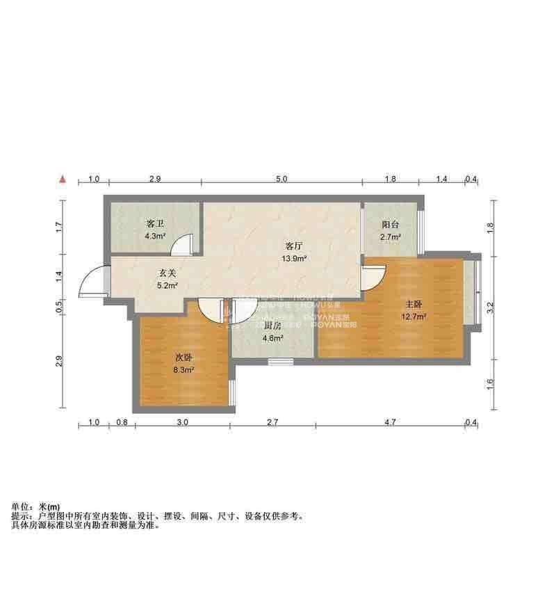 厅室2室1厅1卫1阳台