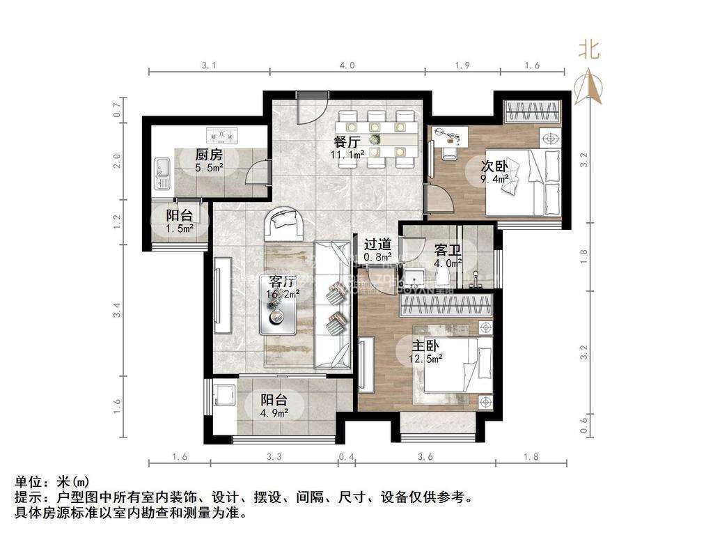 朝向南北 建筑面积94.9㎡