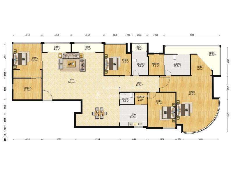 厅室5室3厅3卫1阳台