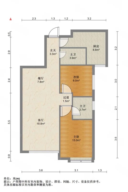 厅室2室2厅2卫1阳台