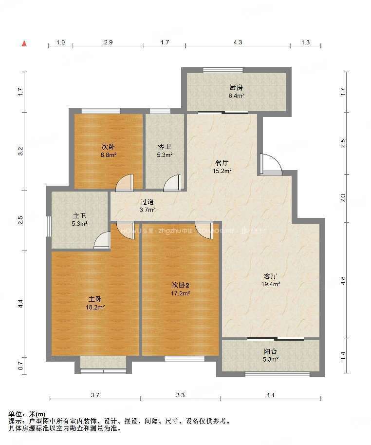 厅室3室2厅2卫1阳台
