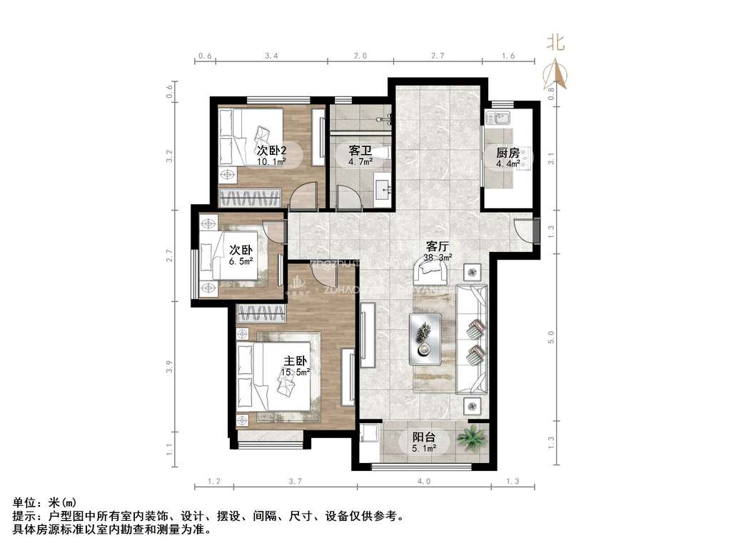 厅室3室2厅1卫1阳台