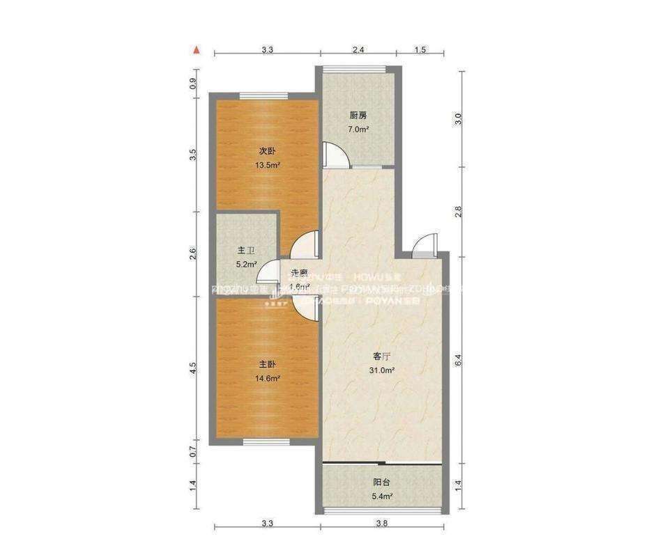 厅室2室1厅1卫1阳台