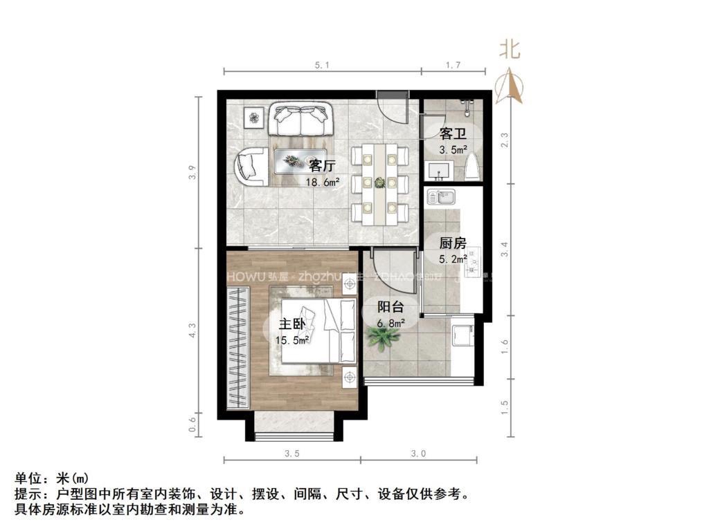 厅室1室1厅1卫1阳台