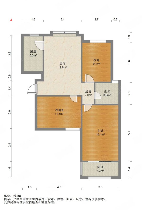 厅室3室2厅1卫1阳台