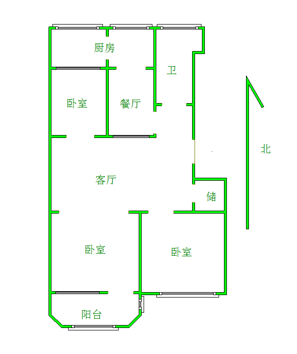 厅室3室2厅1卫1阳台