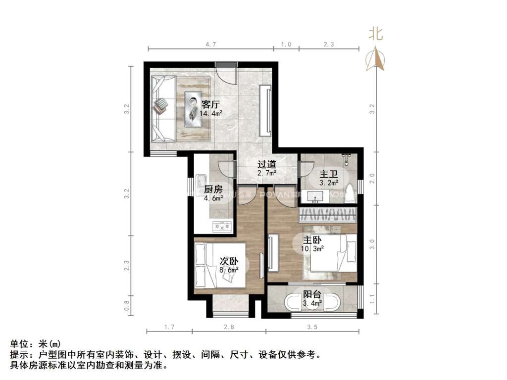 厅室2室1厅1卫1阳台