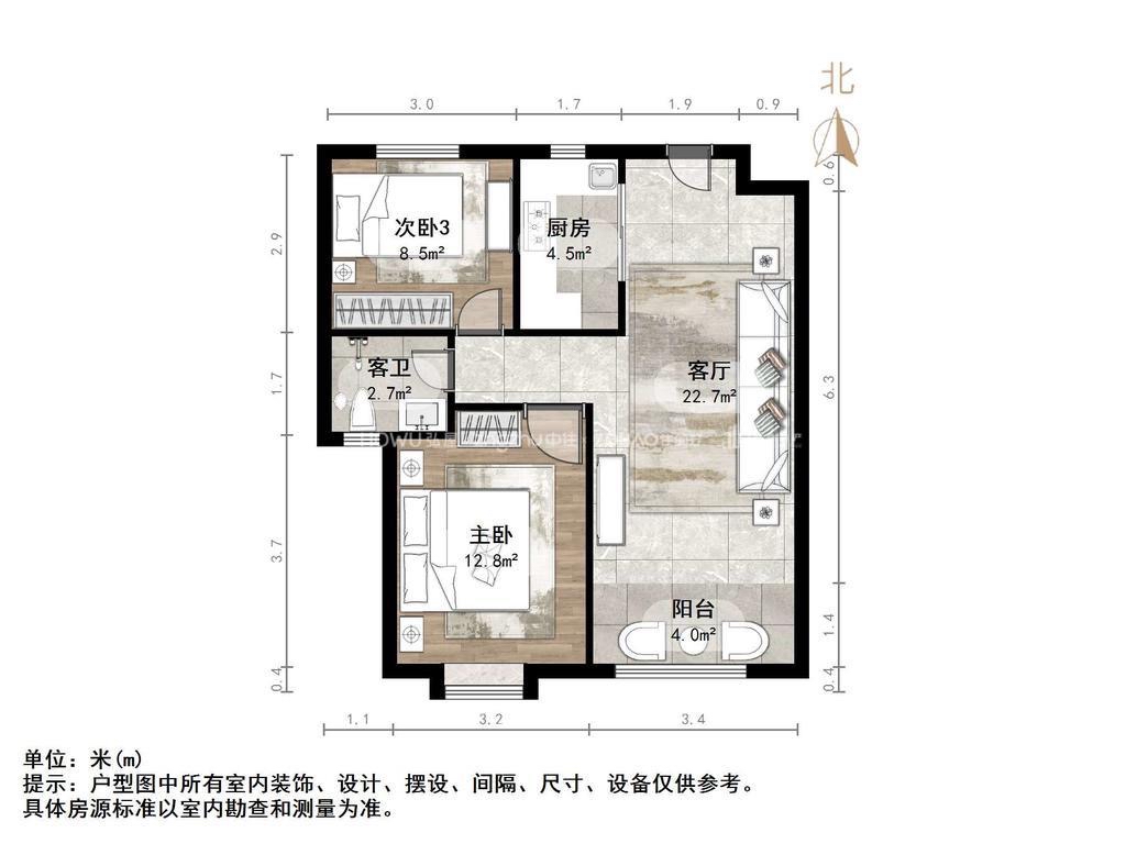 朝向南北 建筑面积91㎡