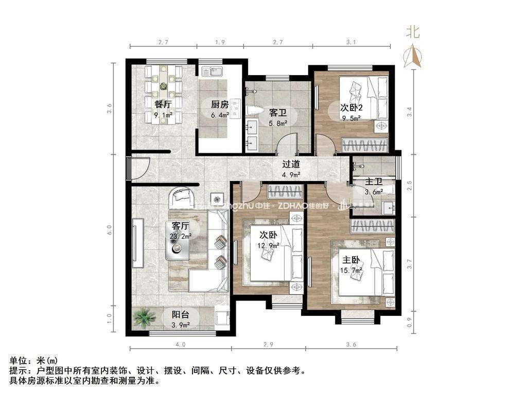 朝向南北 建筑面积125㎡