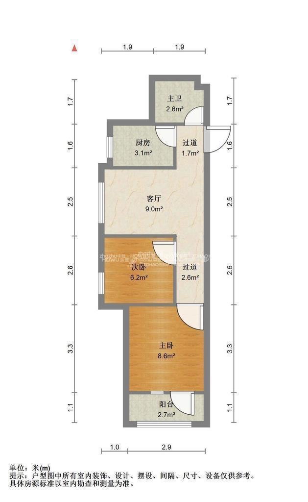 厅室2室1厅1卫1阳台