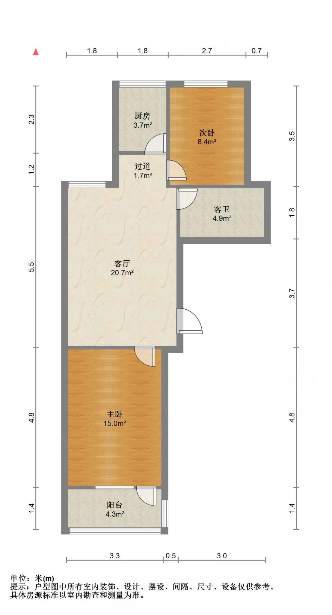 厅室2室1厅1卫1阳台