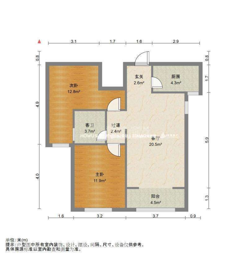 厅室2室2厅1卫1阳台