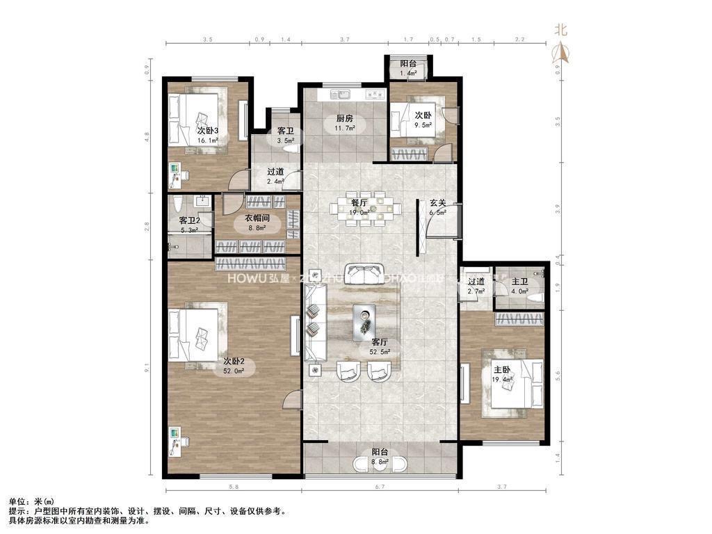 厅室4室2厅4卫2阳台