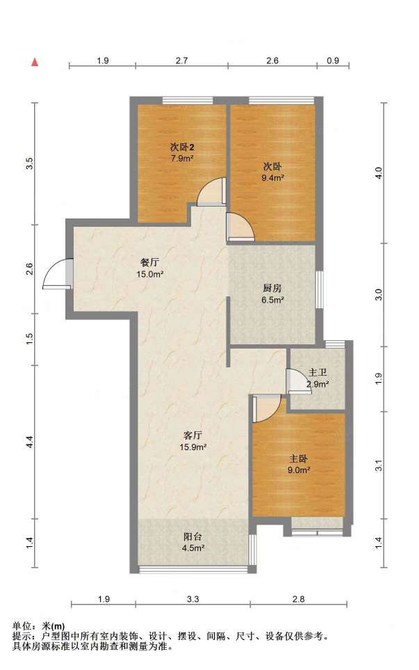 厅室3室2厅1卫1阳台