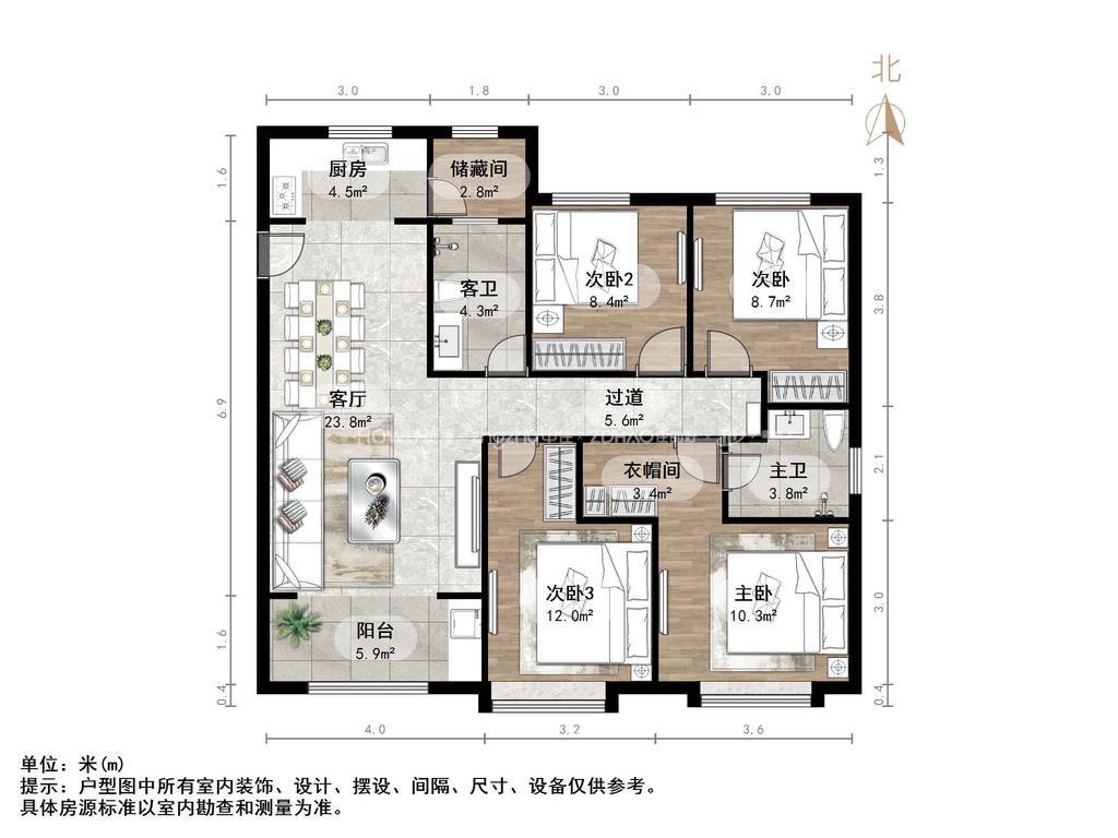 厅室4室2厅2卫2阳台