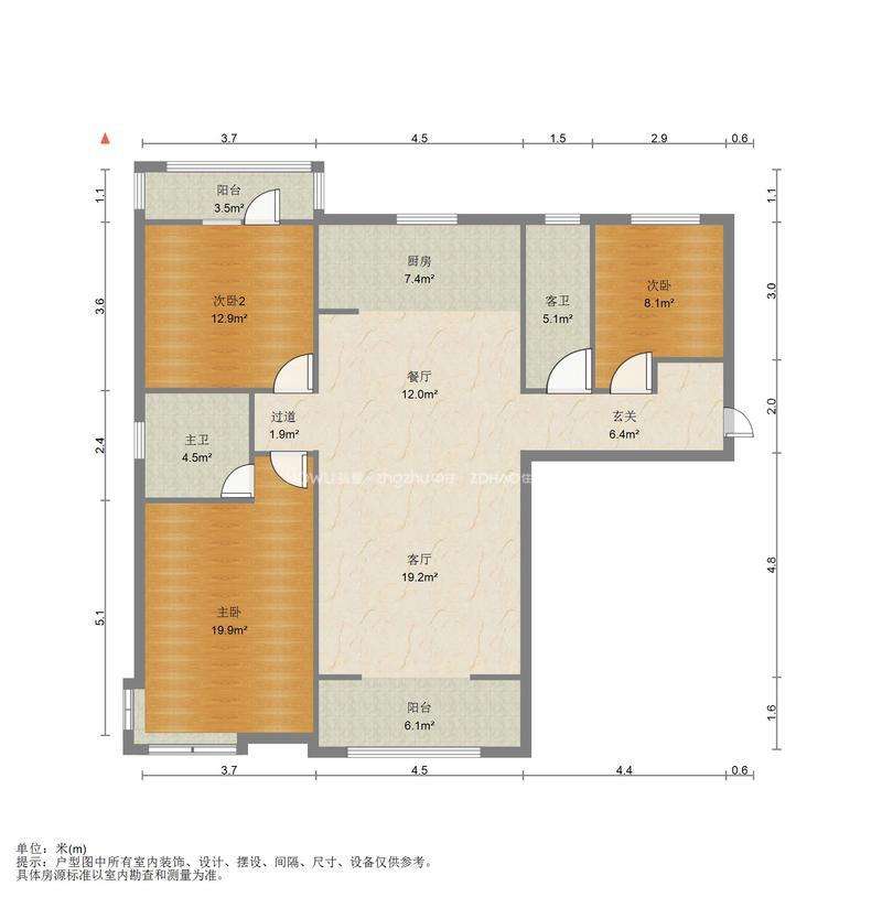 厅室3室2厅2卫2阳台