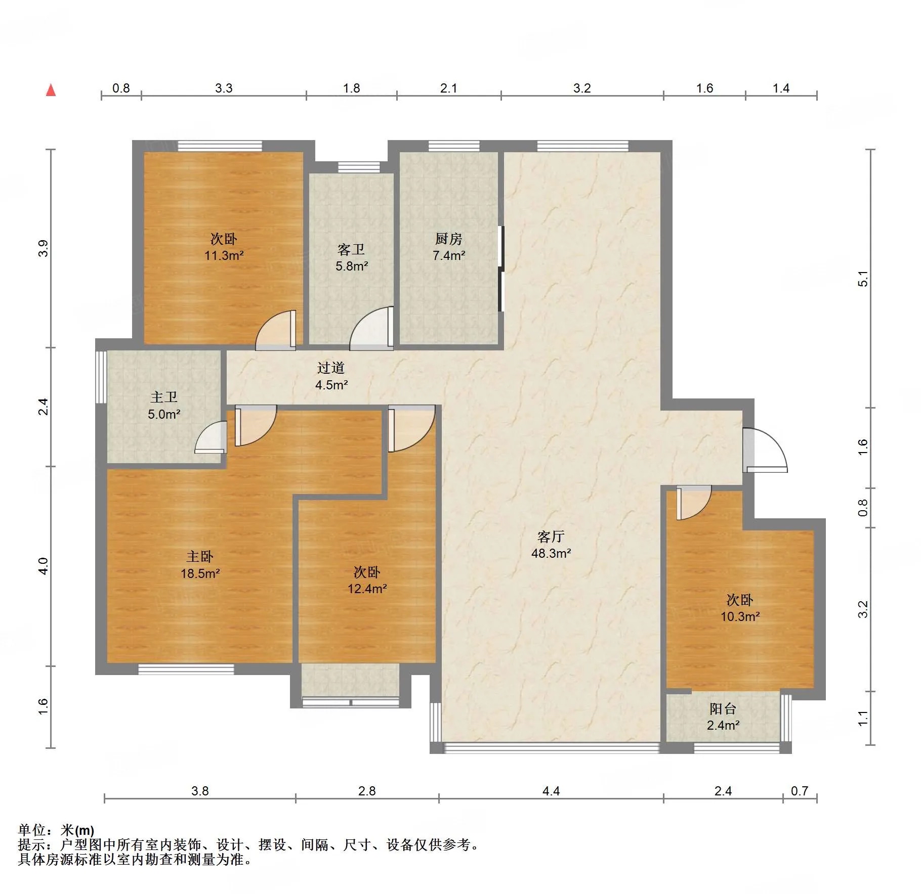 厅室4室2厅2卫1阳台