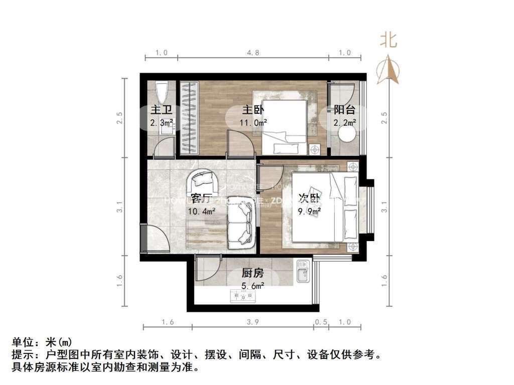朝向南北 建筑面积54.41㎡