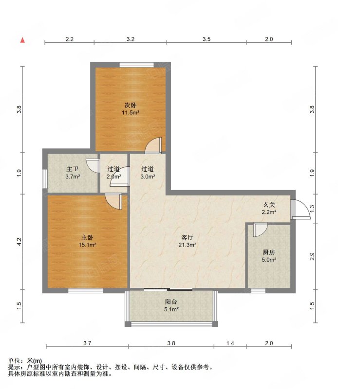 厅室2室1厅1卫1阳台