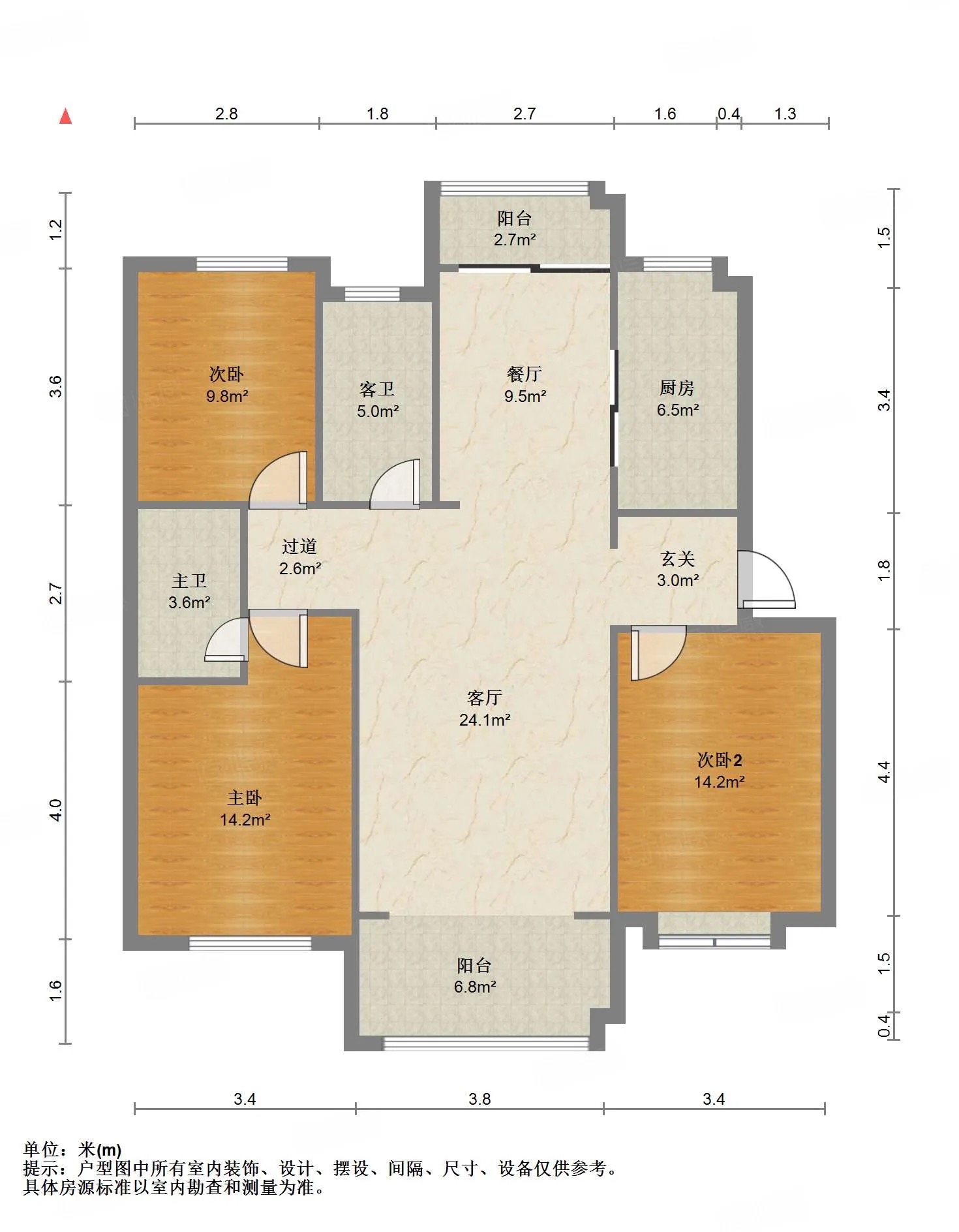 厅室3室2厅2卫1阳台