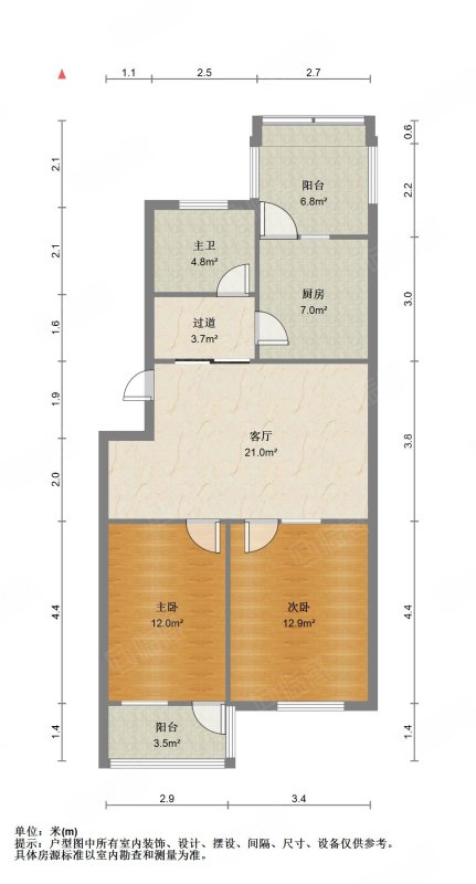 厅室2室1厅1卫0阳台