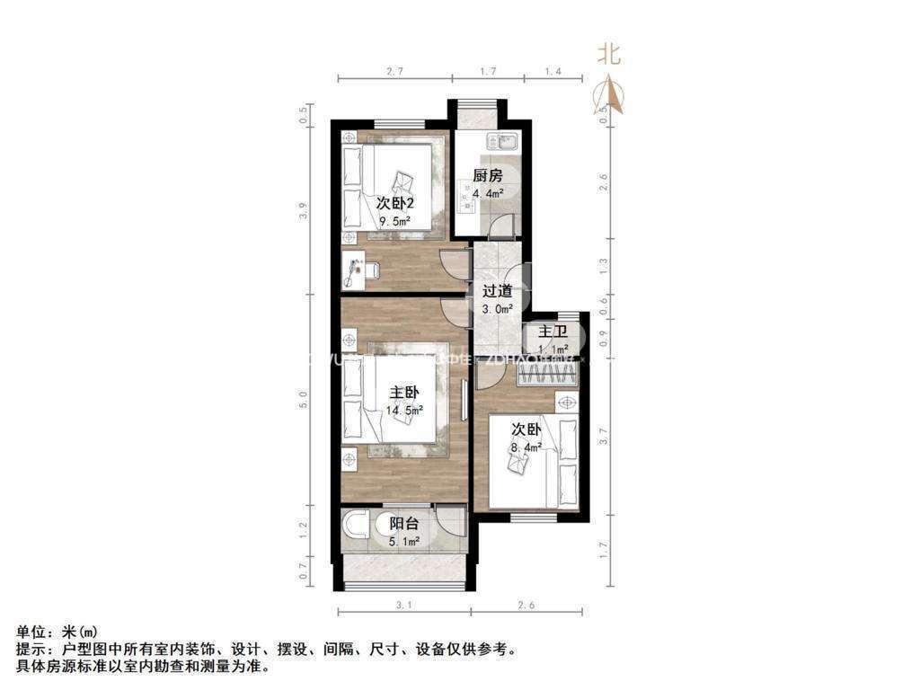 朝向南北 建筑面积60㎡