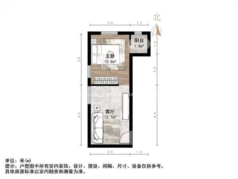 朝向南 建筑面积37.06㎡