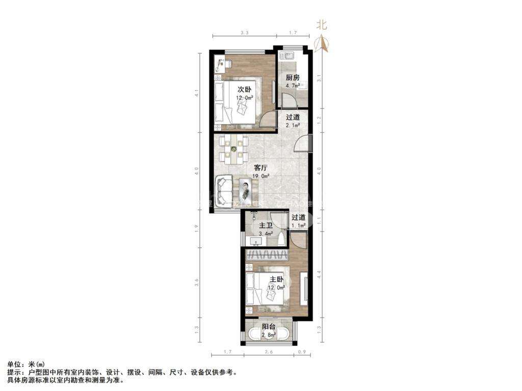 厅室2室2厅1卫1阳台