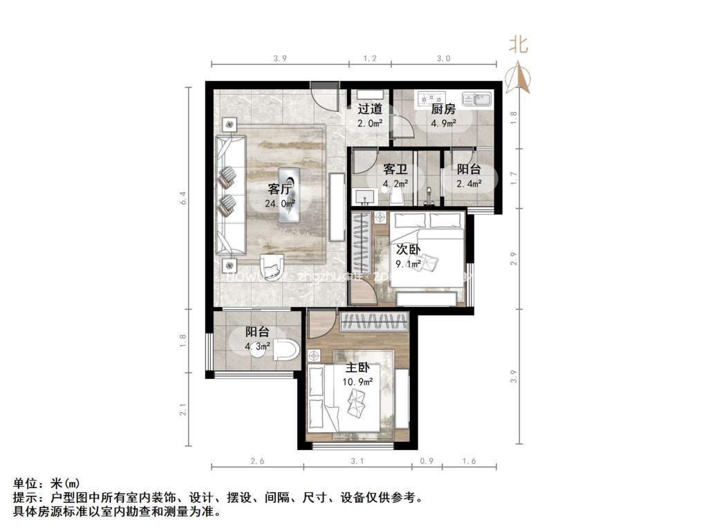 厅室2室2厅1卫1阳台