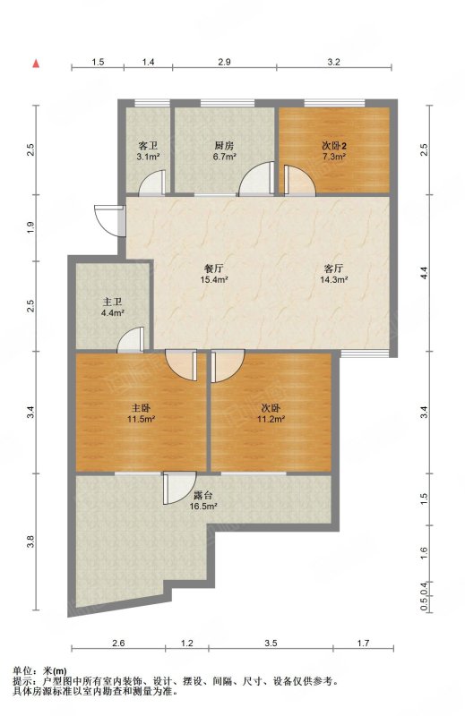 厅室3室2厅1卫1阳台