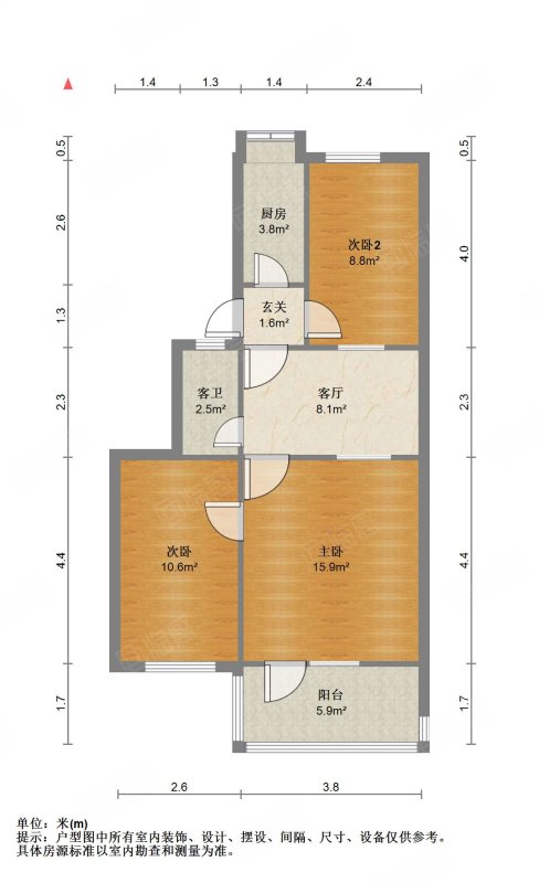 厅室3室1厅1卫1阳台