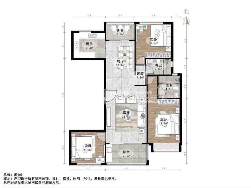 厅室3室2厅2卫2阳台