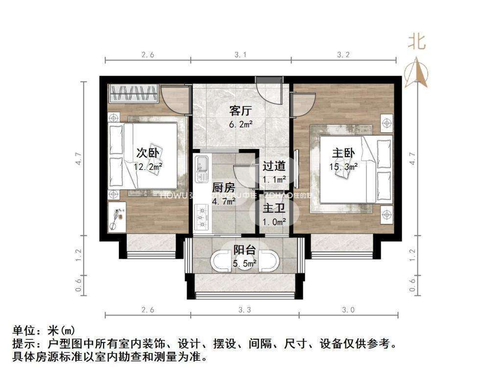 厅室2室1厅1卫1阳台