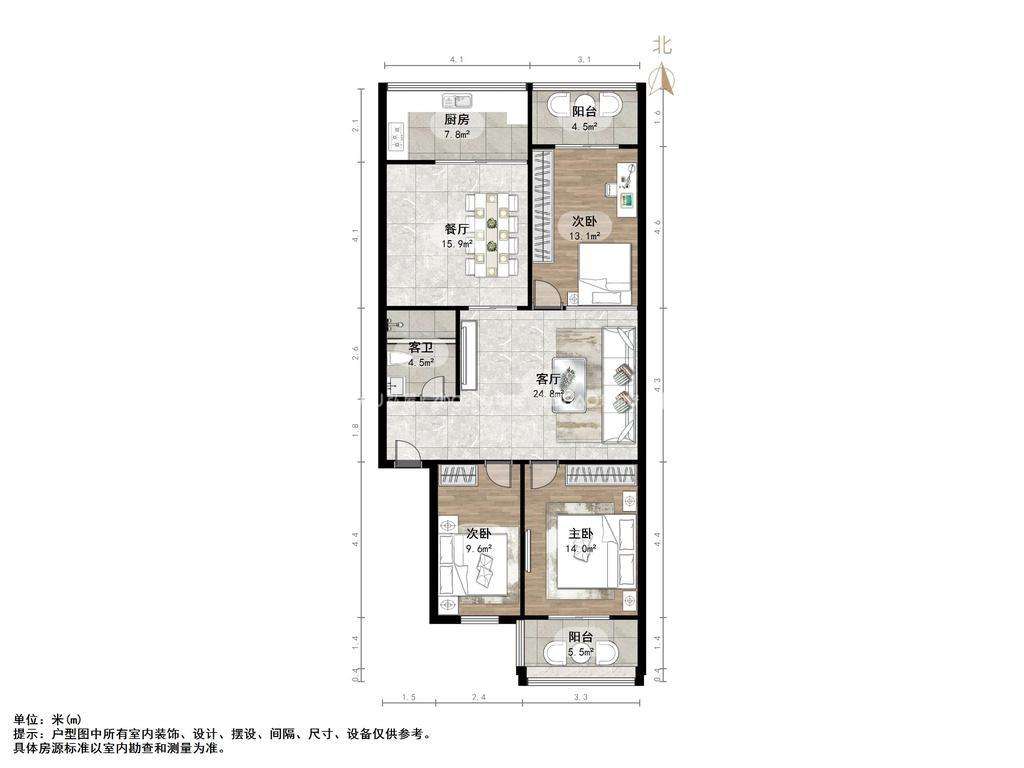 厅室3室2厅1卫1阳台