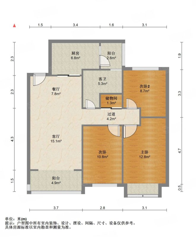 厅室3室2厅1卫1阳台
