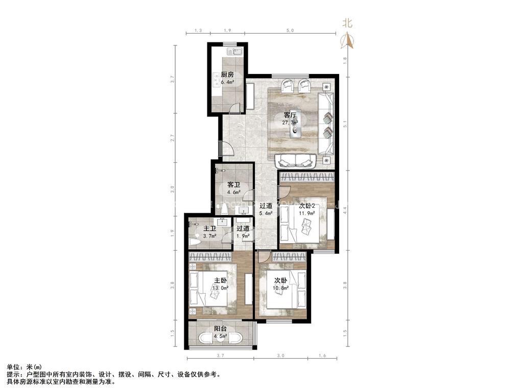 朝向南北 建筑面积120㎡