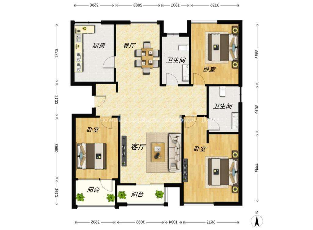 厅室3室2厅2卫2阳台