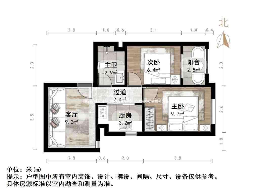 厅室2室2厅1卫1阳台