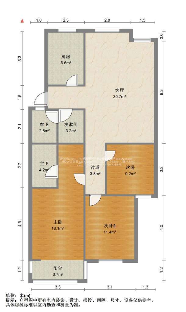 厅室3室2厅2卫1阳台