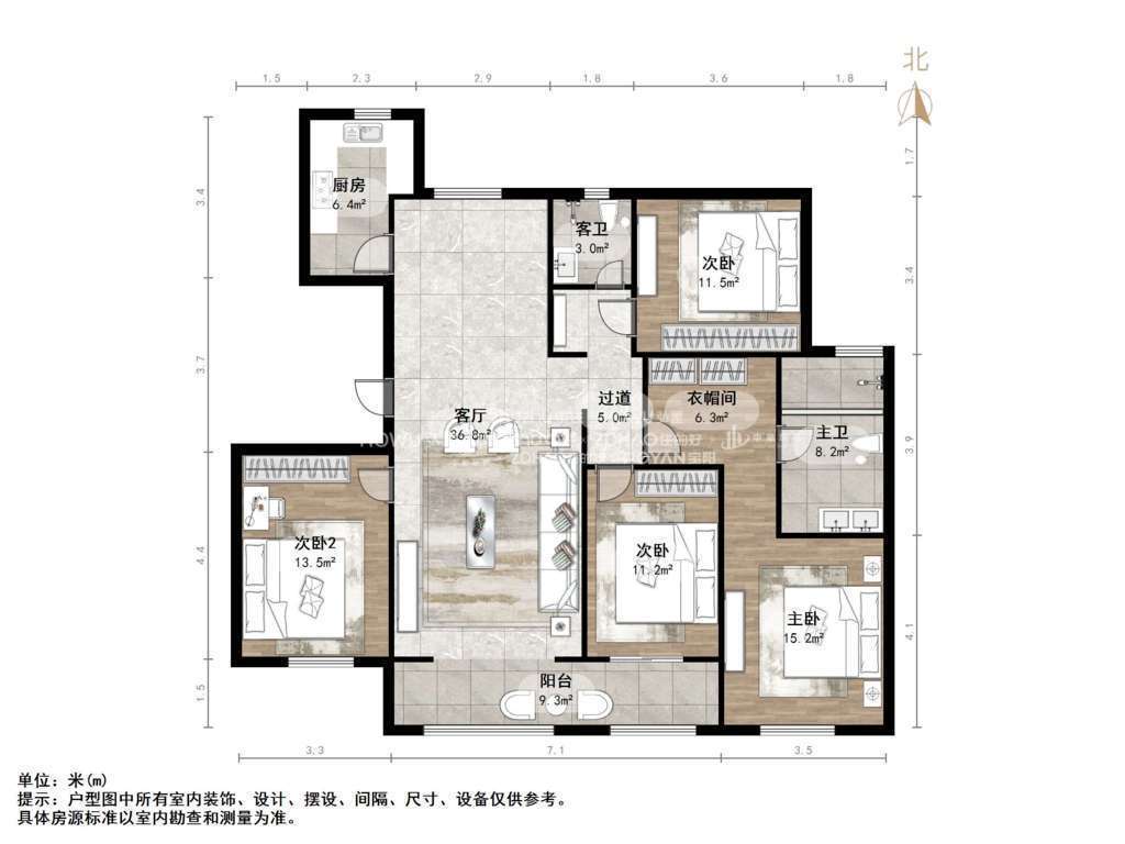 厅室4室2厅2卫2阳台