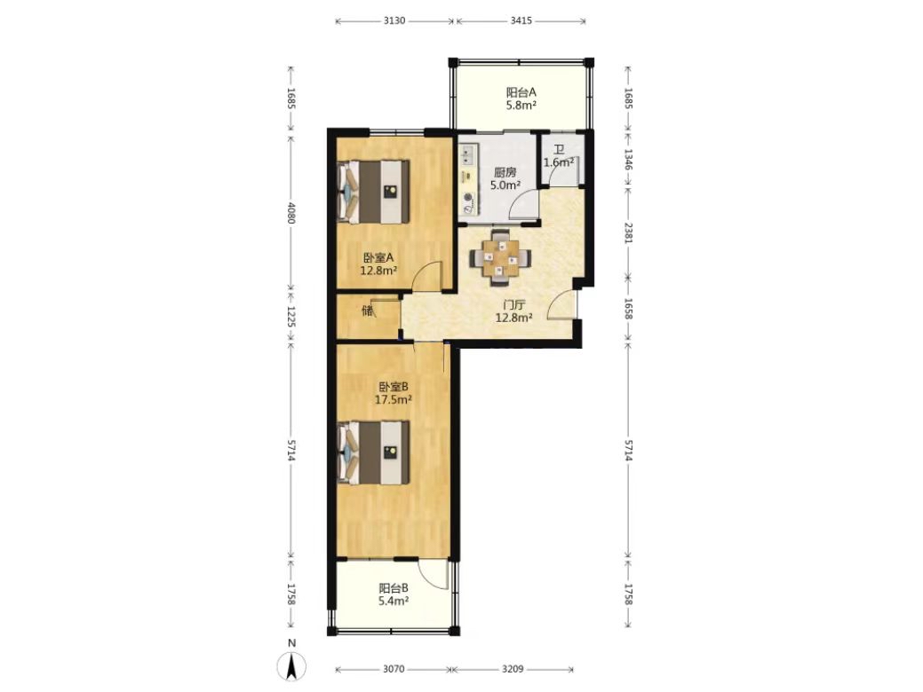 厅室2室1厅1卫0阳台