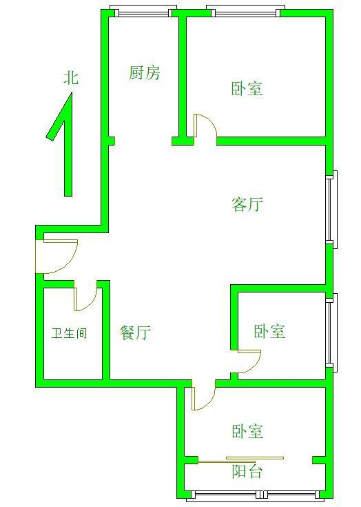 厅室3室2厅1卫1阳台
