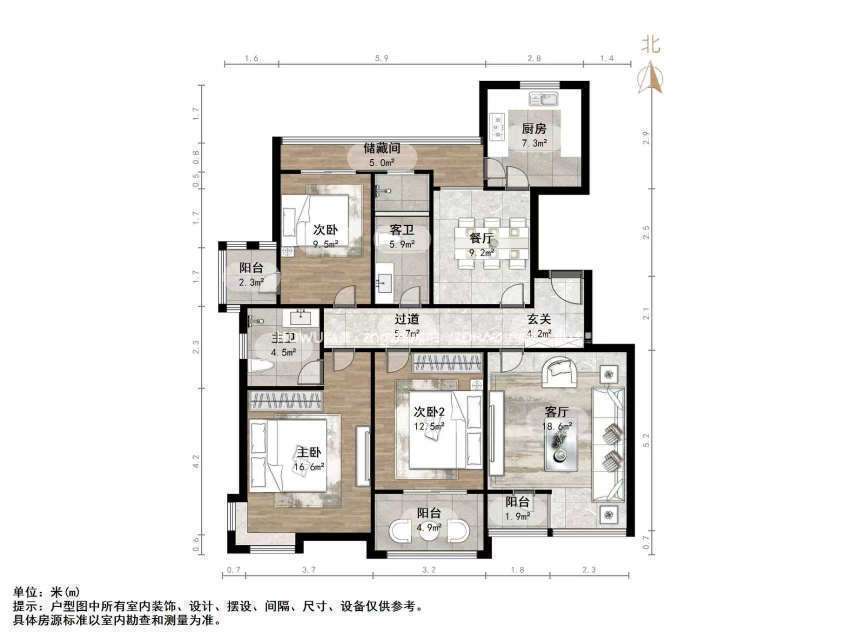 朝向南北 建筑面积136.3㎡